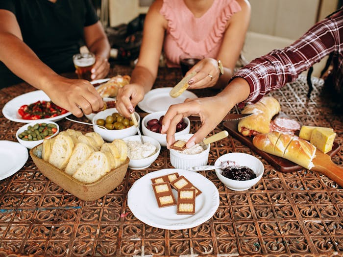 Informações sobre hábitos alimentares equilibrados e maneiras de desfrutar das refeições de forma saudável.